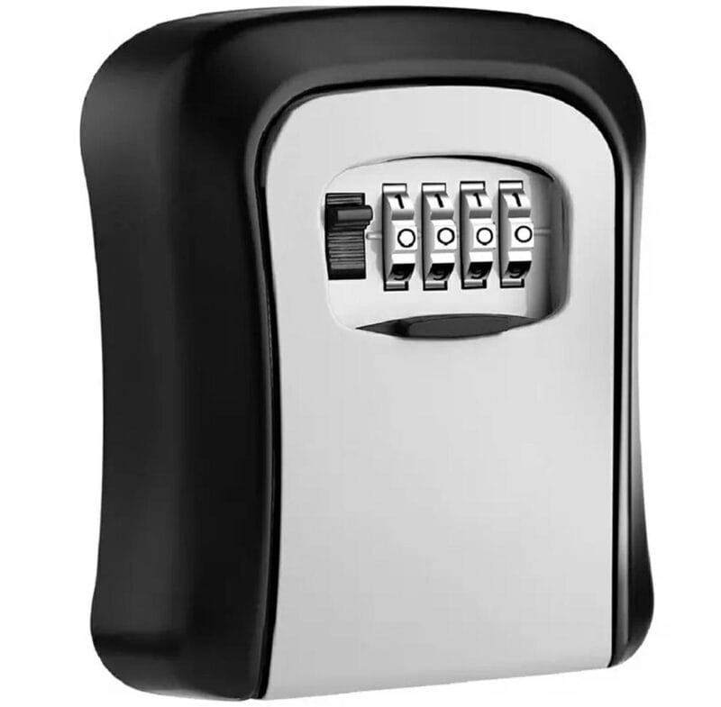 - Zamek szyfrowy z kombinacją 4 cyfr pozwoli bezpiecznie przechowywać klucze do domu.