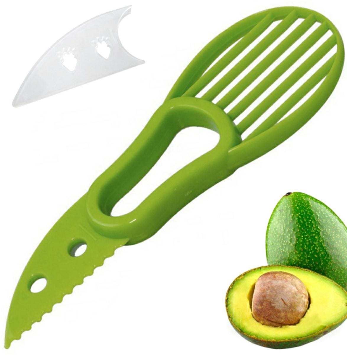 Kompaktowy nóż i drylownica do awokado wykonany z solidnego tworzywa sztucznego. Znacząco ułatwia krojenie owocu oraz usunięcie z niego pestki. Druga strona umożliwia szybkie wydrylowanie miąższu z jego wnętrza. Solidna konstrukcja zapewnia długie i bezproblemowe użytkowanie produktu. Wygodny, zaoblony uchwyt ułatwia wykonywanie cięć i uniemożliwia skaleczenie się.