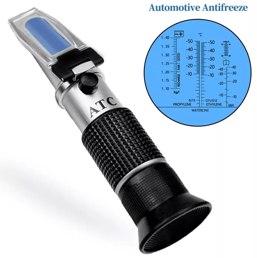 Kompaktowy, optyczny tester płynów eksploatacyjnych samochodu. Umożliwia błyskawiczny pomiar zawartości elektrolitu w baterii akumulatora oraz temperatury zamarzania płynów chłodniczych i tych na bazie glikolu. Wystarczy pobrać próbkę płynu za pomocą pipety, umieścić próbkę na panelu kontrolnym refraktometru i odczytać wskazanie za pomocą wizjera.