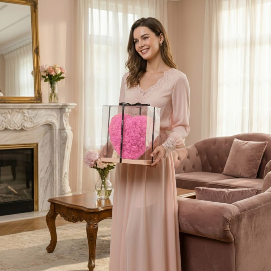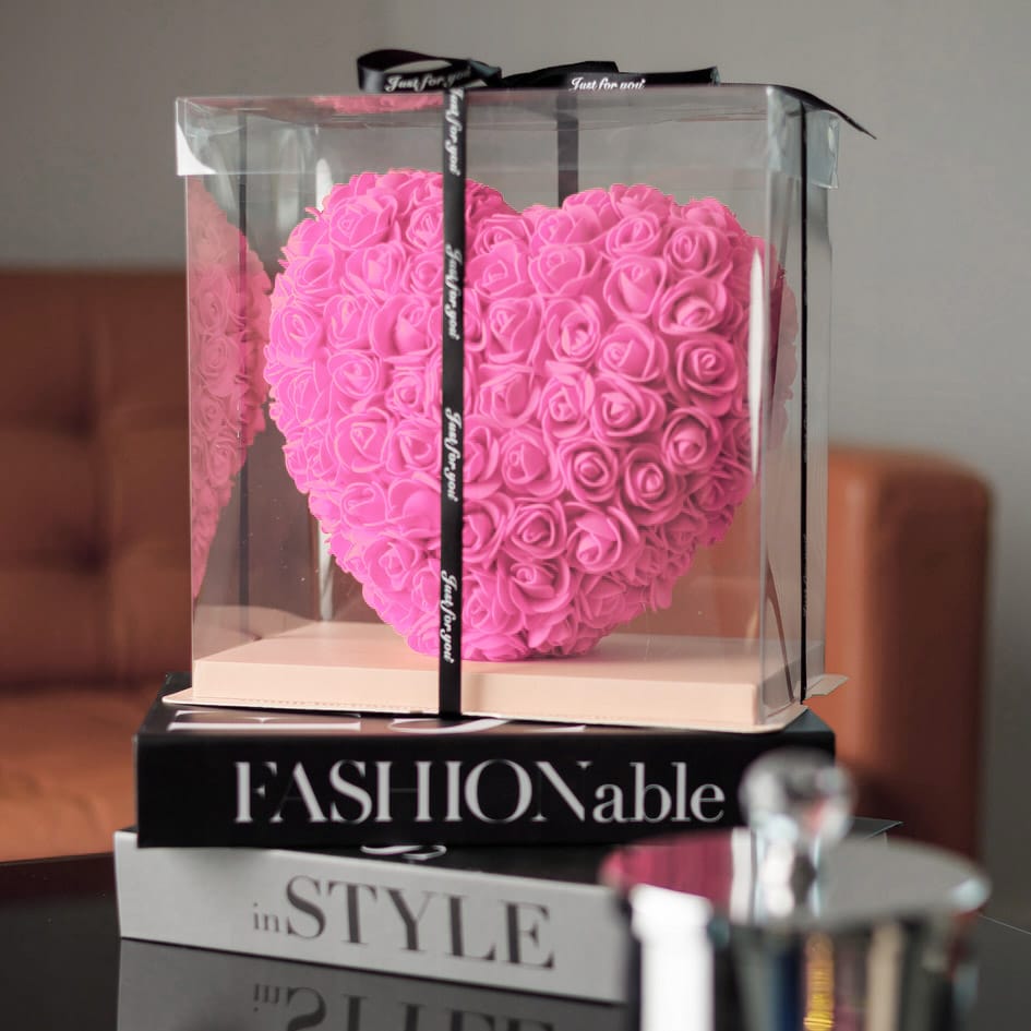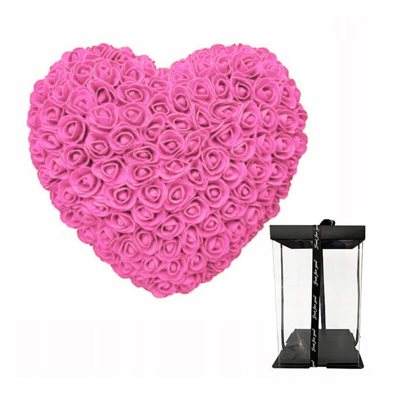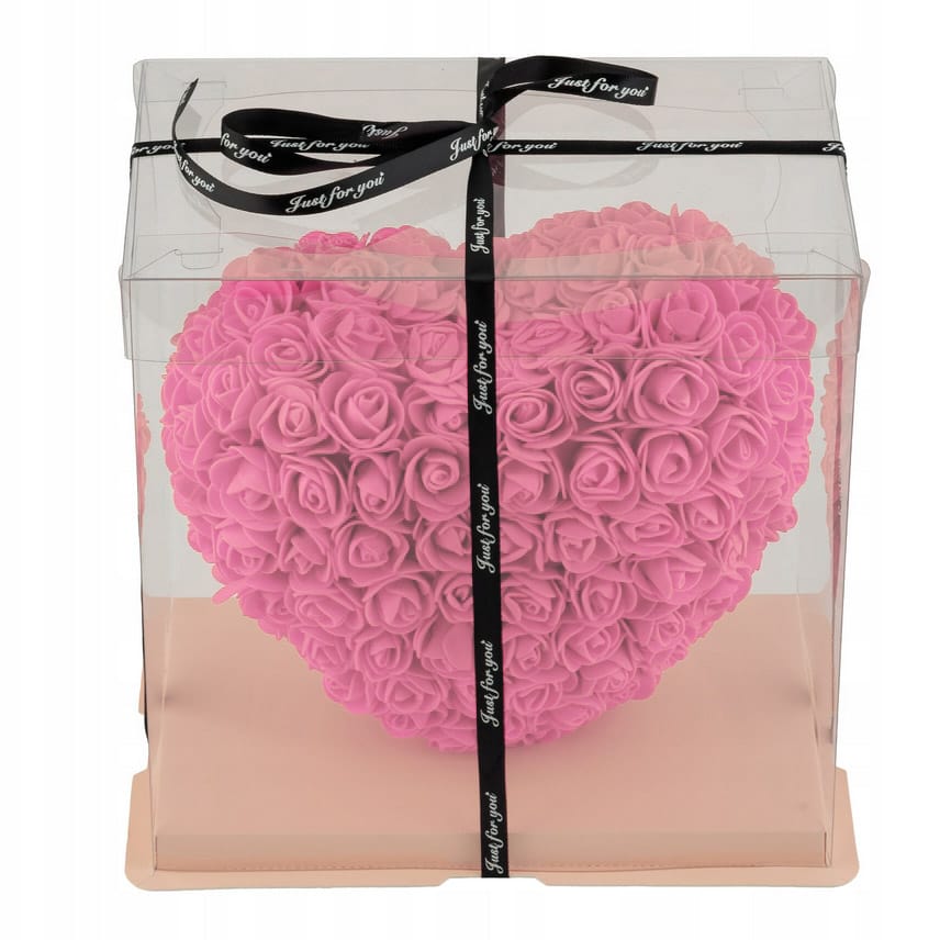 RÓŻOWE SERCE Z RÓŻ KWIATÓW OZDOBA UPOMINEK PREZENT WALENTYNKI ROSE HEART + BOX 25CM