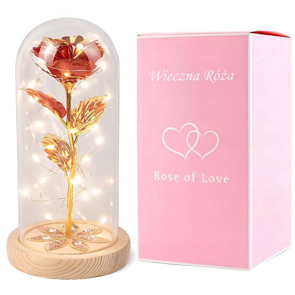 Wieczna róża LED na drewnianej podstawie to elegancka i ponadczasowa dekoracja, która zachwyca subtelnym blaskiem oraz starannym wykonaniem. Idealnie sprawdzi się jako prezent na Walentynki, rocznicę, urodziny lub jako symbol miłości wręczony bez okazji. Połączenie realistycznie wykonanej róży, transparentnej kopuły ochronnej oraz naturalnej drewnianej podstawy nadaje całości wyjątkowego, stylowego charakteru. Delikatne podświetlenie LED tworzy romantyczny klimat i podkreśla piękno kompozycji w każdym wnętrzu.