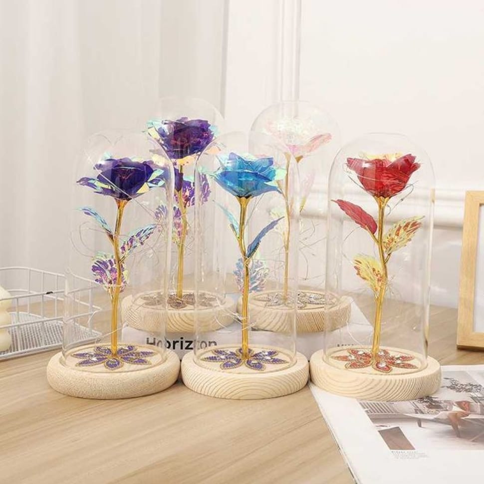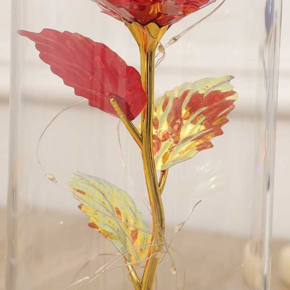 Wieczna róża LED zamknięta w przezroczystej kopule ochronnej