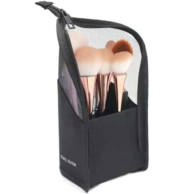 Podręczna i kompaktowa kosmetyczka oraz etui na pędzle. Wykonana z solidnego tworzywa sztucznego, odpornego na zachlapania. Wygodny zamek błyskawiczny umożliwia błyskawiczny dostęp do zawartości kosmetyczki. Przezroczyste okienko w górnej części umożliwi wgląd do wnętrza. Przemyślana konstrukcja (wysokość) ułatwia umieszczenie w organizerze nawet długich pędzli i innych przyborów.