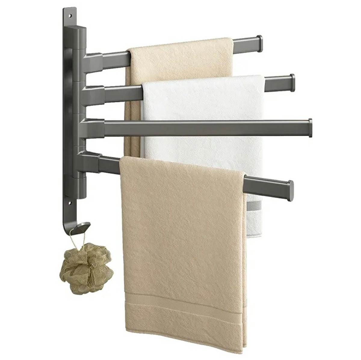• Uchwyt posiada cztery, regulowane ramiona do zawieszania ręczników.