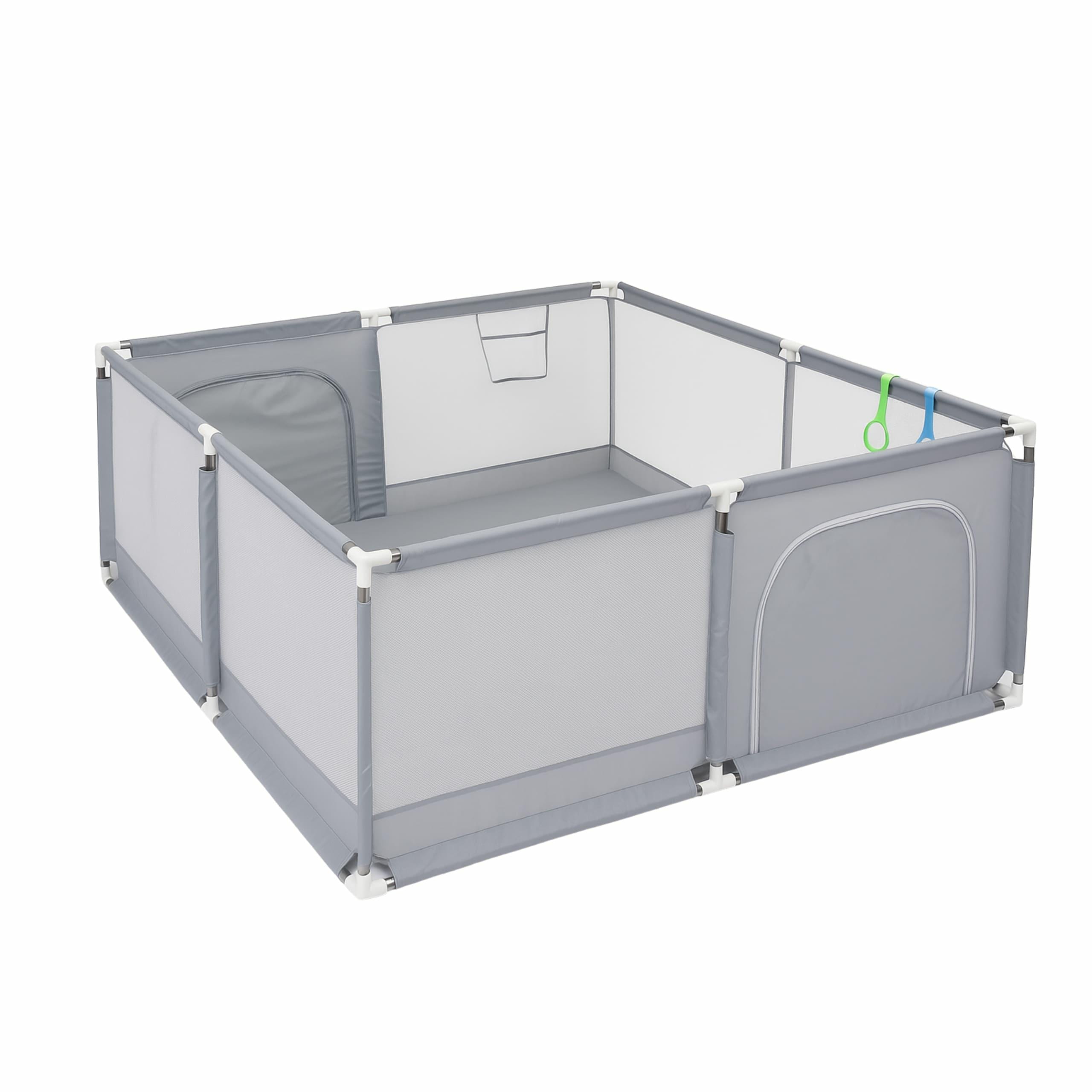 Duży kojec dziecięcy tworzący bezpieczną i komfortową strefę do zabawy, raczkowania oraz nauki wstawania. Wzmocniona siatka 360° zapewnia doskonałą wentylację i pełną widoczność dziecka, a stabilna konstrukcja z antypoślizgowymi przyssawkami zapobiega przesuwaniu się kojca.