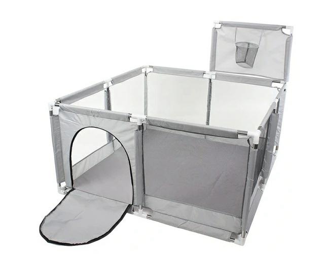 Kojec dla dziecka 130 × 130 cm suchy basen z koszem – szary