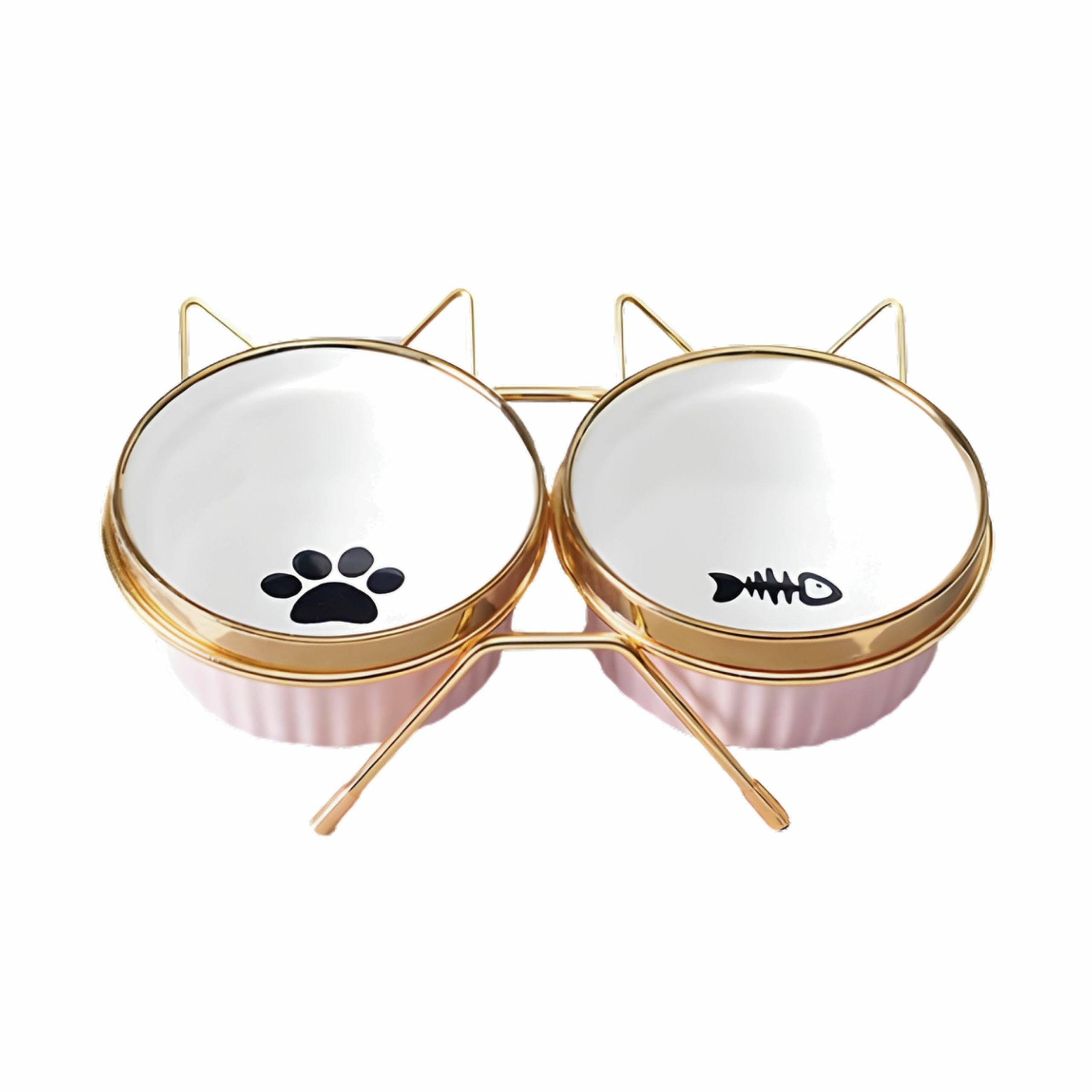 ZESTAW 2x300ml MISKA DLA KOTA PSA NA STOJAKU CERAMICZNA RÓŻOWO ZŁOTA