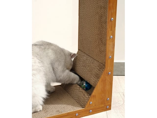 Struktura kartonu jest atrakcyjna dla kotów i skutecznie pomaga w ścieraniu pazurów, chroniąc meble i ściany.