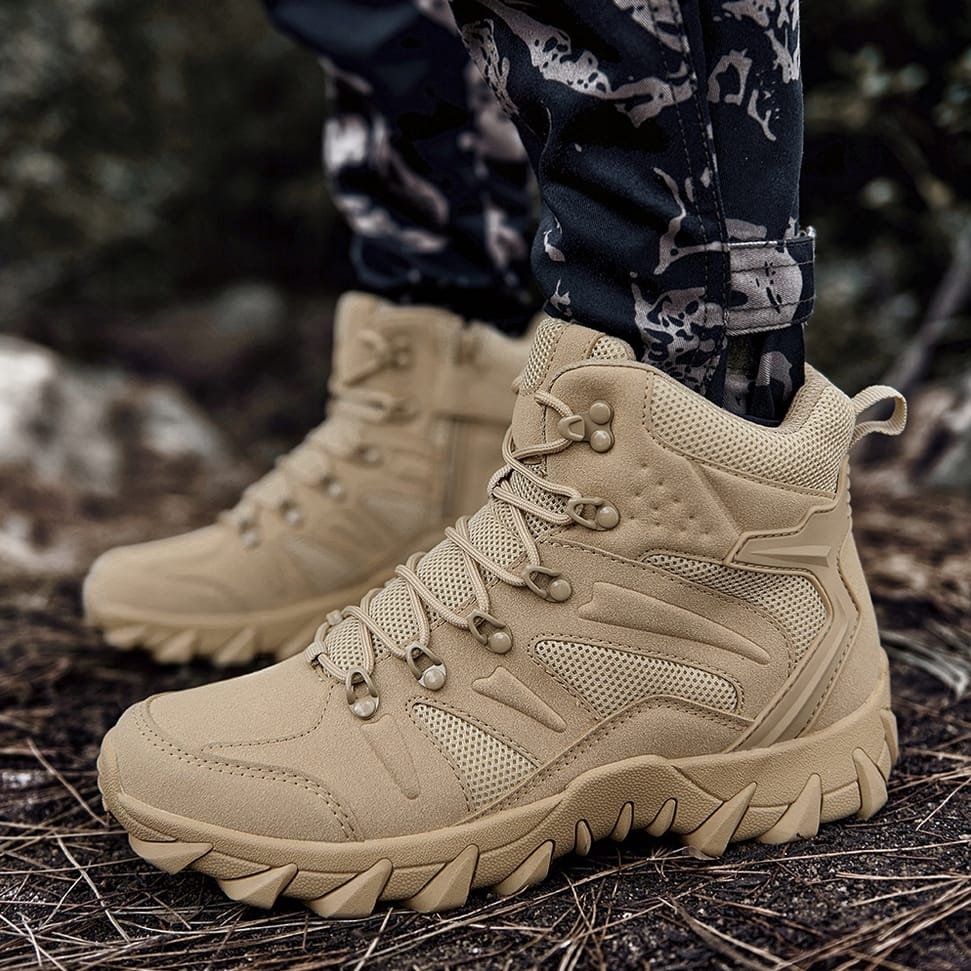 Buty trekkingowe taktyczne wojskowe w kolorze khaki, rozmiar 41, to solidne i funkcjonalne obuwie zaprojektowane z myślą o użytkownikach potrzebujących niezawodności, ochrony i komfortu w trudnych warunkach terenowych. Dzięki połączeniu nowoczesnych technologii i wysokiej jakości materiałów, ten model zapewnia idealne wsparcie zarówno podczas wypraw, jak i codziennego użytkowania.