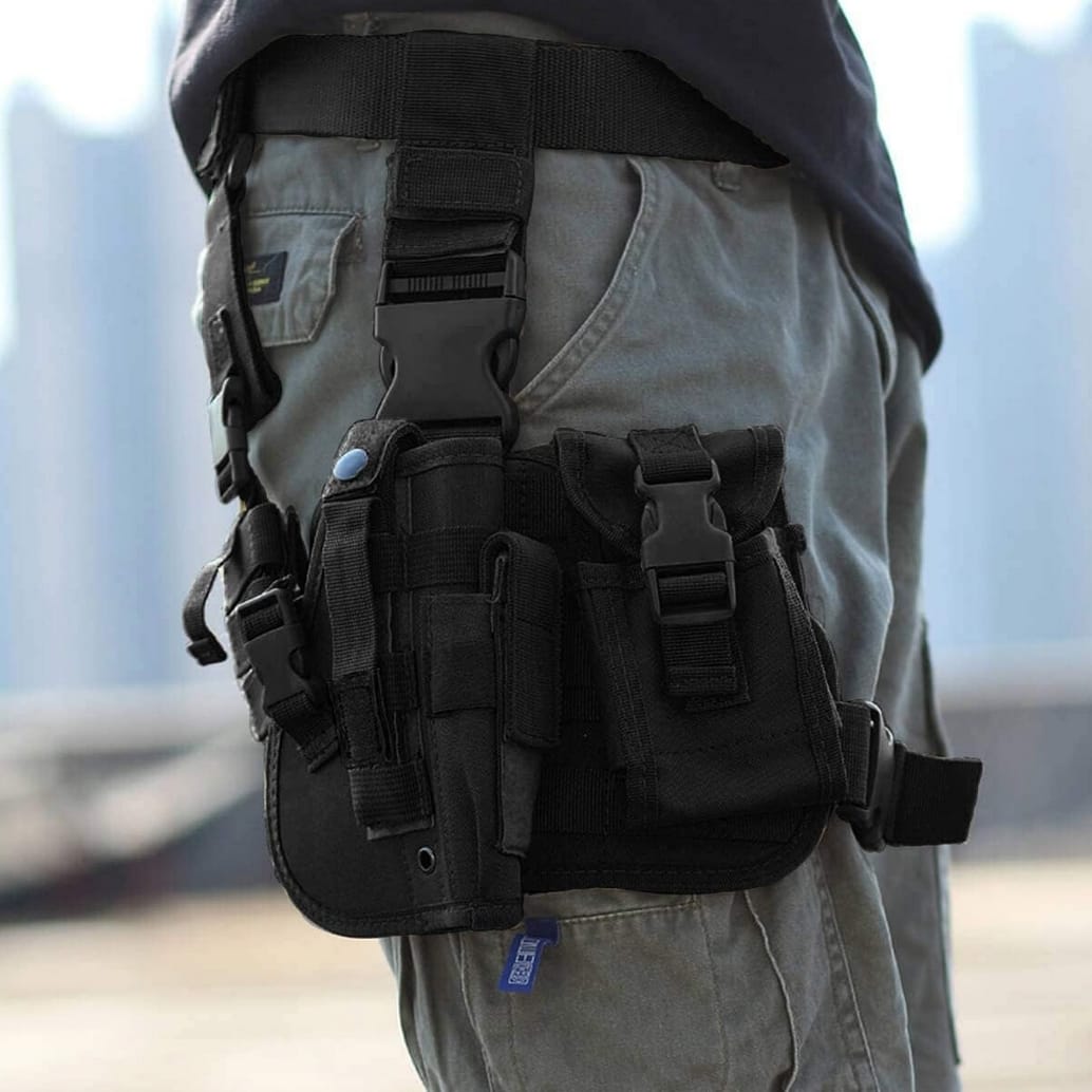 Taktyczna kabura udowa z ładownicą na magazynki to funkcjonalne i stabilne rozwiązanie przeznaczone do zastosowań taktycznych, treningowych oraz ASG. Regulowana konstrukcja zapewnia dopasowanie do różnych obwodów uda, a dodatkowe mocowanie do pasa zwiększa bezpieczeństwo i komfort noszenia. Model łączy szybki dostęp do broni z wysoką stabilnością nawet podczas dynamicznego ruchu.
