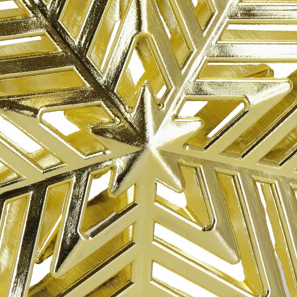 Złota gwiazda na czubek choinki to klasyczna i efektowna ozdoba, która doskonale dopełni każdą świąteczną aranżację. Jej elegancki kształt oraz połyskujące, metaliczne wykończenie sprawiają, że pięknie odbija światło lampek choinkowych, dodając całej dekoracji wyjątkowego uroku. Dzięki solidnemu wykonaniu z trwałego tworzywa sztucznego, gwiazda jest odporna na upadki i uszkodzenia, co czyni ją praktyczną i bezpieczną ozdobą na wiele sezonów.