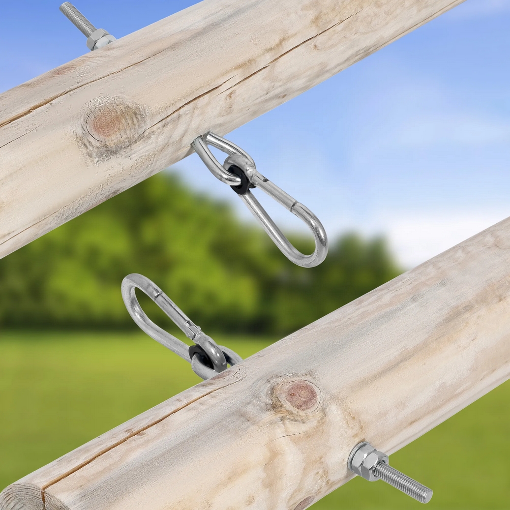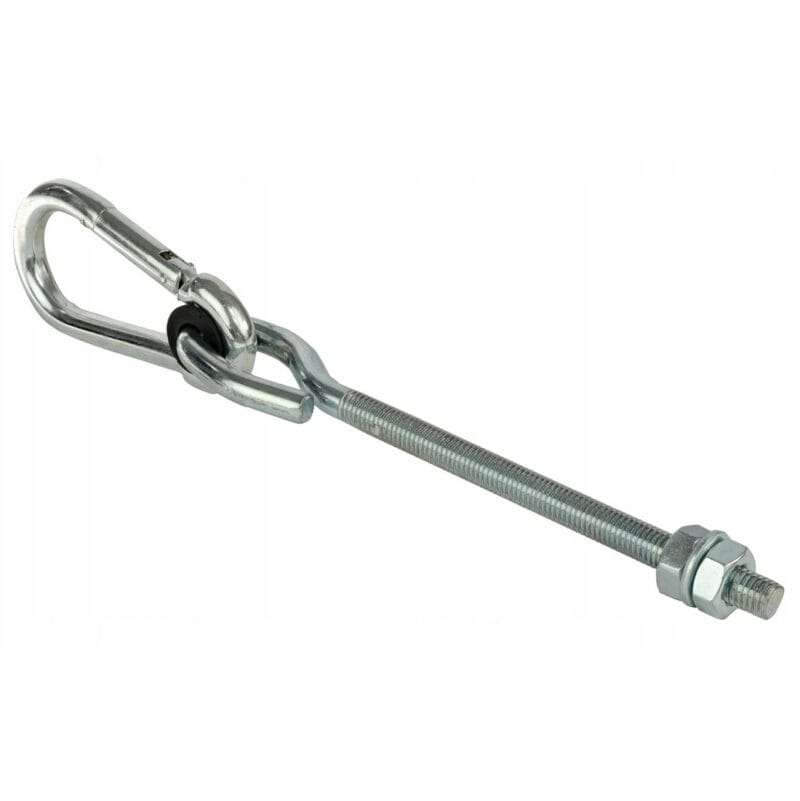 Hak huśtawkowy z karabińczykiem M12 to wytrzymałe i praktyczne rozwiązanie do montażu huśtawek, hamaków oraz innych elementów wiszących. Dzięki solidnej konstrukcji i zastosowaniu odpornych materiałów doskonale sprawdza się zarówno w ogrodzie, jak i na placach zabaw. Ruchomy karabińczyk na nylonowej rolce zapewnia płynną pracę, zmniejsza tarcie oraz chroni liny przed nadmiernym zużyciem.