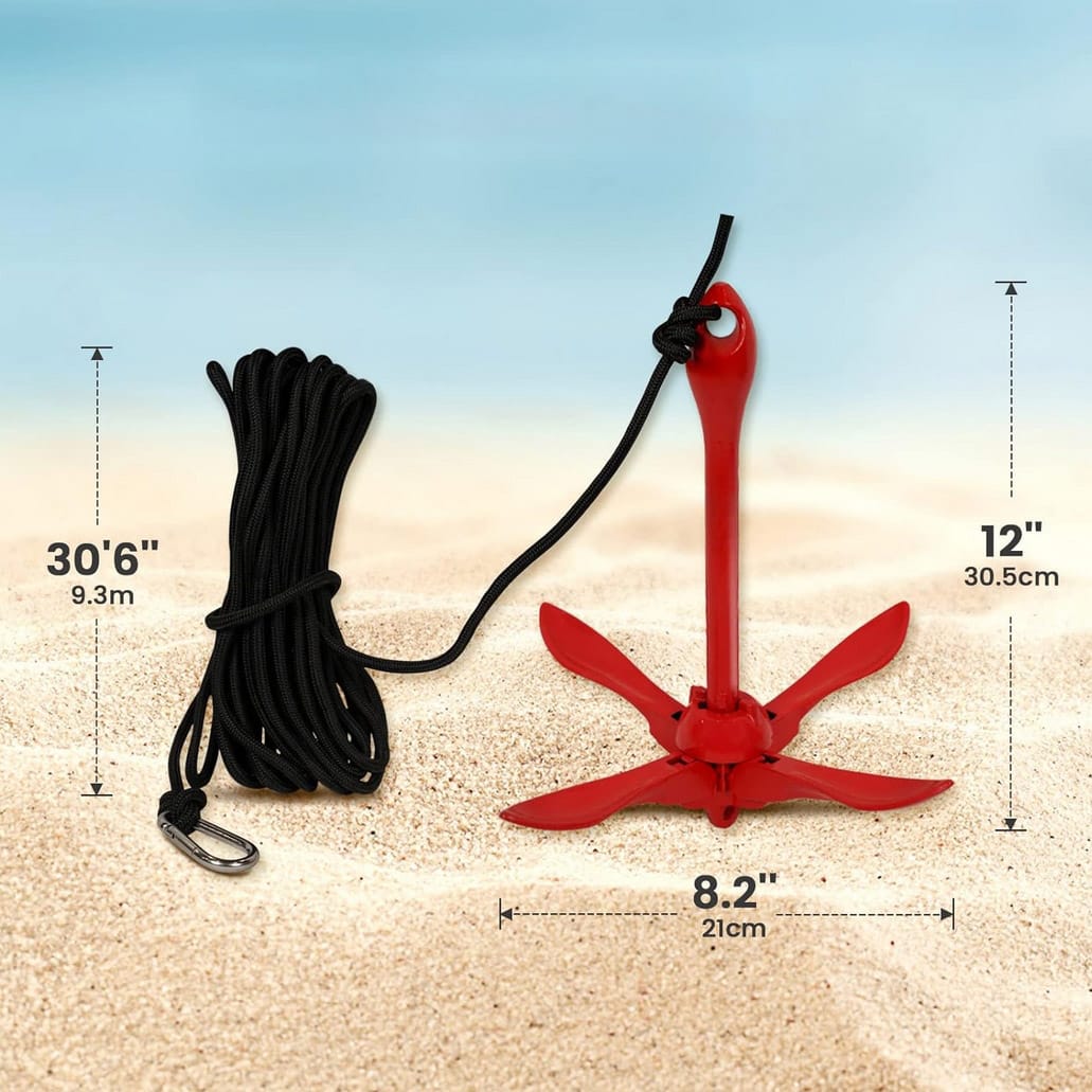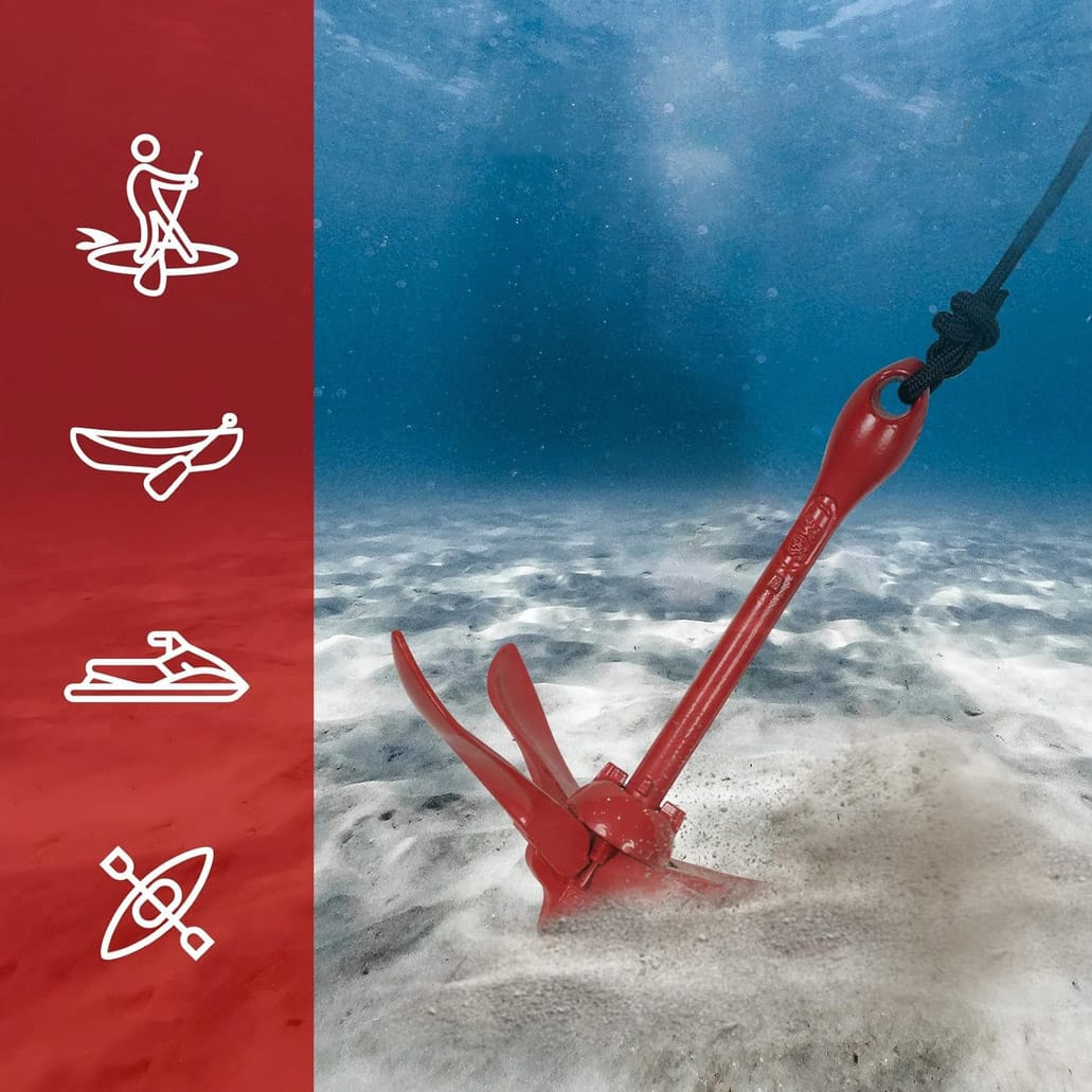 Kotwica składana powlekana 1,5 kg z liną 12 m – zestaw kotwiczny to kompletny i praktyczny zestaw przeznaczony do łodzi, pontonów, kajaków, desek SUP, jachtów, motorówek oraz skuterów wodnych. Składana konstrukcja zapewnia wygodny transport i przechowywanie, a powłoka z czerwonej farby żelowej chroni powierzchnię jednostki przed zarysowaniami i obiciami. Zestaw gwarantuje stabilność na różnych typach dna – od piasku i kamieni po roślinność czy rafy – dzięki czemu sprawdzi się zarówno na jeziorach i rzekach, jak i na wodach morskich.