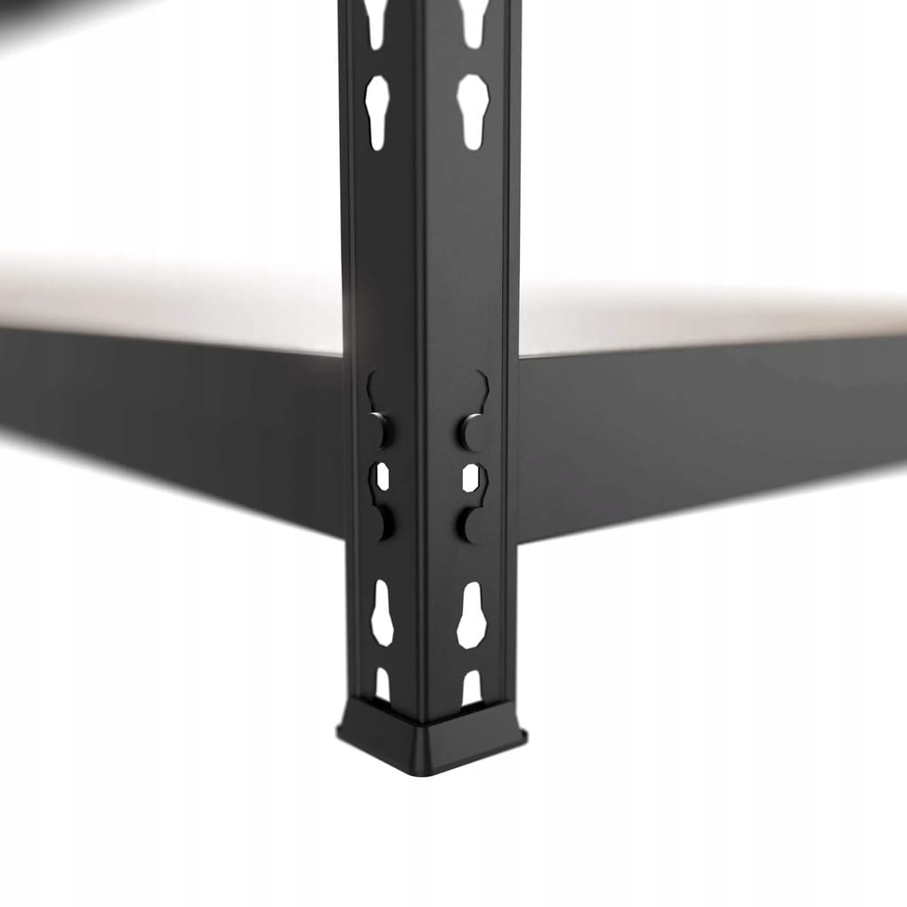Solidny regał magazynowy PREMIUM w kolorze czarnym to idealne rozwiązanie do garażu, piwnicy, warsztatu, sklepu czy schowka. Dzięki dużym wymiarom (180 × 180 × 60 cm) i nośności całkowitej aż 800 kg, zapewnia bezpieczne i wygodne przechowywanie nawet ciężkich przedmiotów. Cztery półki z płyty MDF można dowolnie rozmieścić na wysokość, a konstrukcję rozłożyć na dwa mniejsze regały lub wykorzystać jako funkcjonalny stół roboczy. Regał montowany jest bezśrubowo – szybko i intuicyjnie, bez użycia narzędzi.