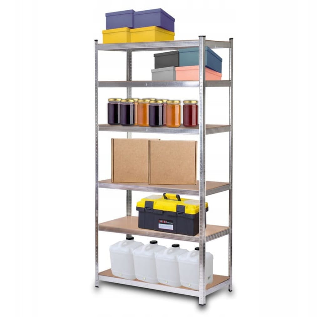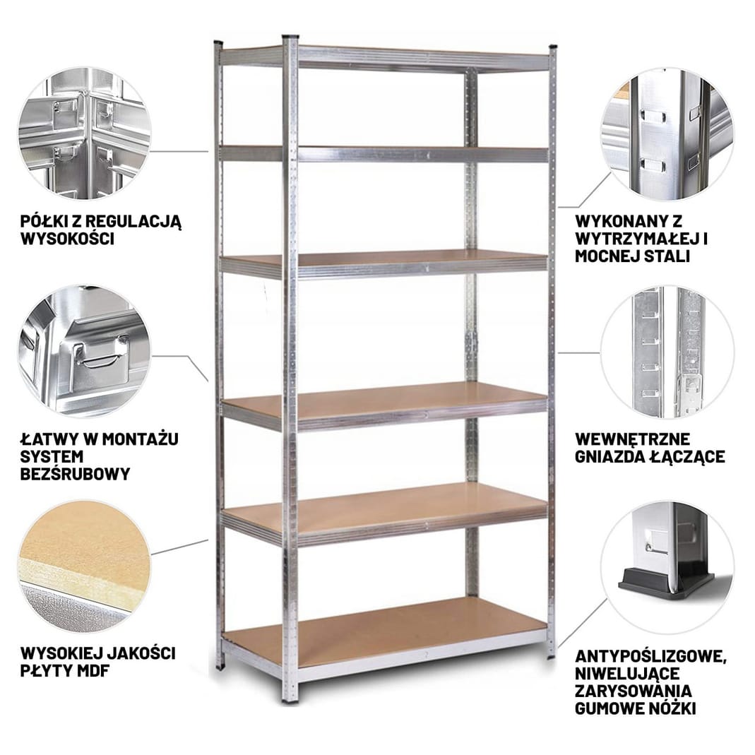 Metalowy regał magazynowy o wymiarach 222 × 110 × 50 cm to solidne i funkcjonalne rozwiązanie do przechowywania w garażu, magazynie, warsztacie, piwnicy czy sklepie. Wytrzymała konstrukcja w kolorze srebrnym pozwala na bezpieczne przechowywanie ciężkich przedmiotów, kartonów, narzędzi lub sprzętu. Regał wyposażony jest w 6 mocnych półek z płyty MDF, których wysokość można dowolnie regulować, dopasowując układ do własnych potrzeb. Dodatkową zaletą jest możliwość podziału regału na dwa mniejsze moduły lub wykorzystania go jako praktycznego stołu warsztatowego.