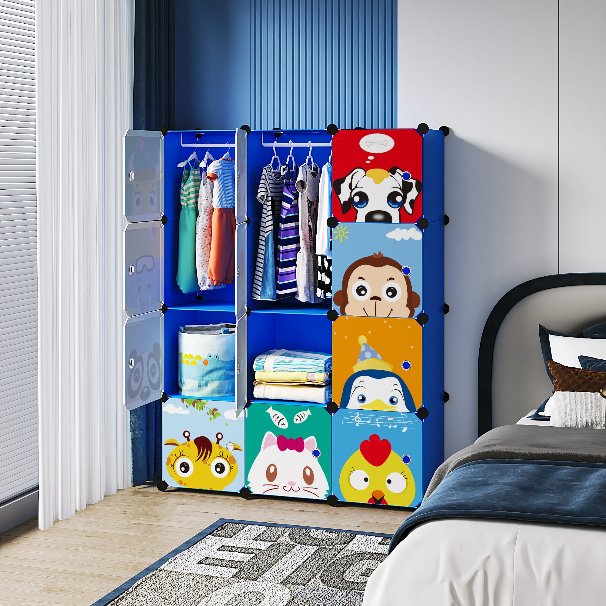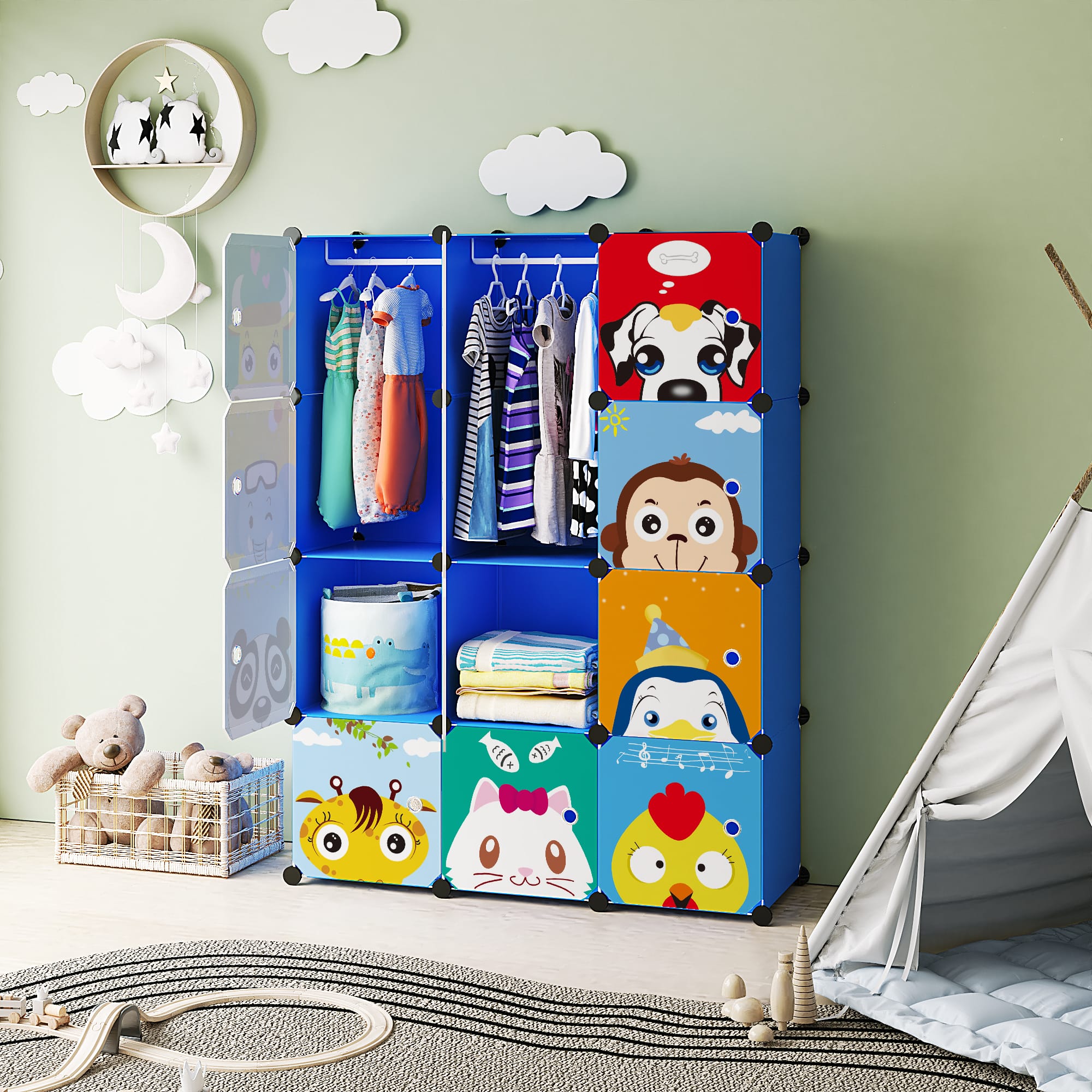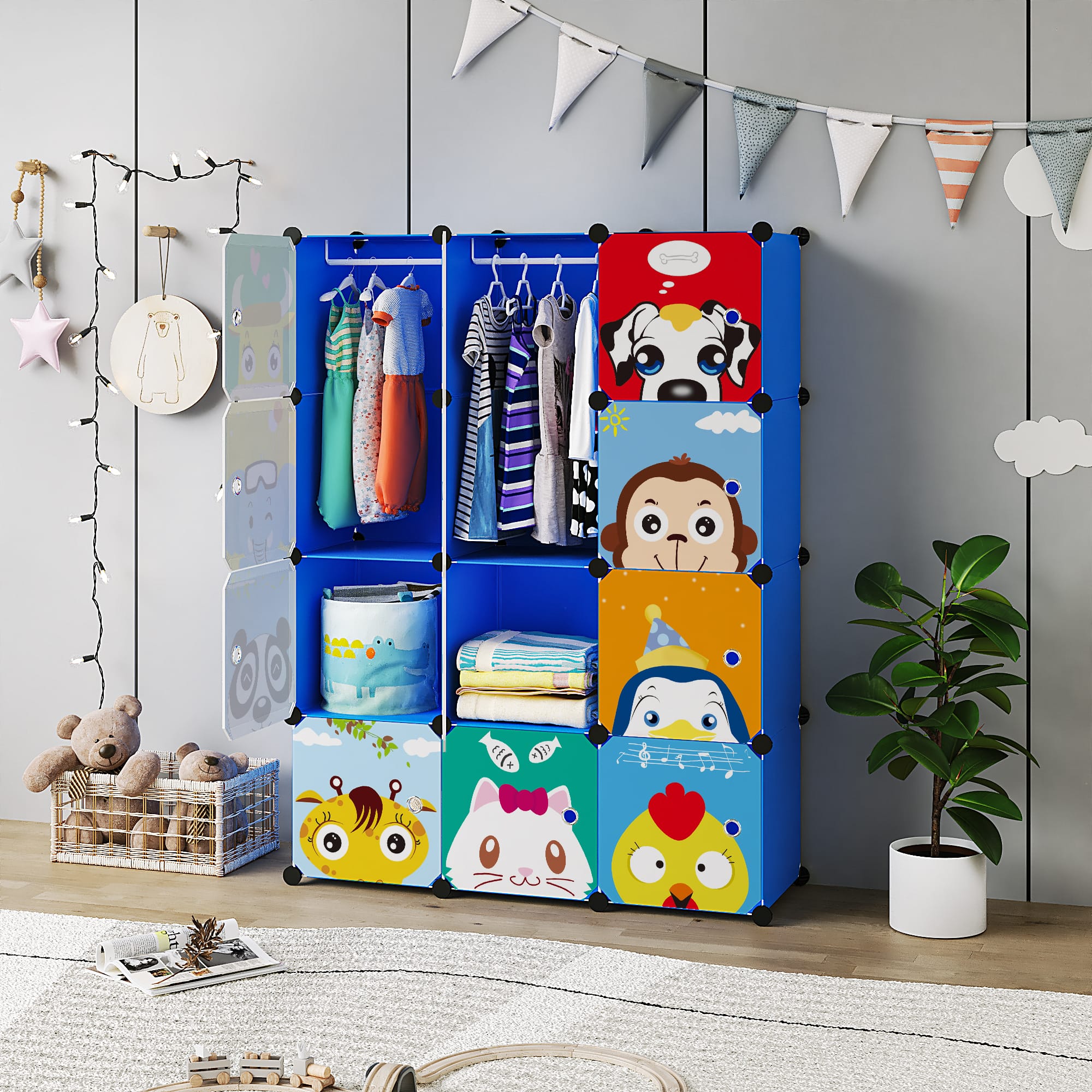 Modułowa szafa w kolorze niebieskim to funkcjonalne i przestronne rozwiązanie do przechowywania butów, ubrań, zabawek oraz różnego rodzaju akcesoriów. Dzięki możliwości dowolnego łączenia modułów można ją łatwo dopasować do każdego pomieszczenia – przedpokoju, pokoju dziecięcego, garderoby czy łazienki. Stabilna konstrukcja z plastiku i metalu gwarantuje trwałość, a zamykane drzwiczki zapewniają porządek oraz ochronę przed kurzem. Montaż jest szybki i intuicyjny, bez użycia narzędzi.