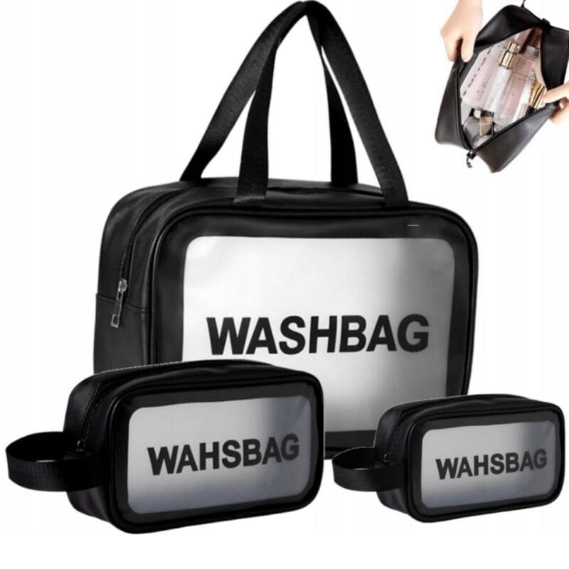 - Zestaw 3w1: trzy kosmetyczki w różnych rozmiarach, idealne do organizacji przedmiotów podczas podróży.