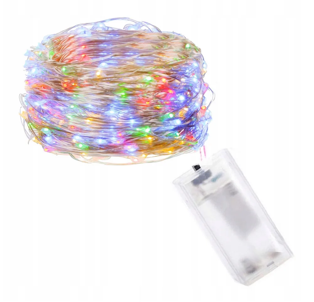 Lampki na druciku z 50 mikro diodami LED to idealna ozdoba świąteczna, która doskonale sprawdzi się jako dekoracja choinki, wnętrza, stroików, a także jako element prezentu. Dzięki giętkiemu drucikowi, lampki można łatwo ułożyć wokół roślin, na parapecie lub w dowolnym innym miejscu, tworząc magiczną atmosferę. Światełka w kolorach multikolor wprowadzą świąteczny nastrój do każdego pomieszczenia.