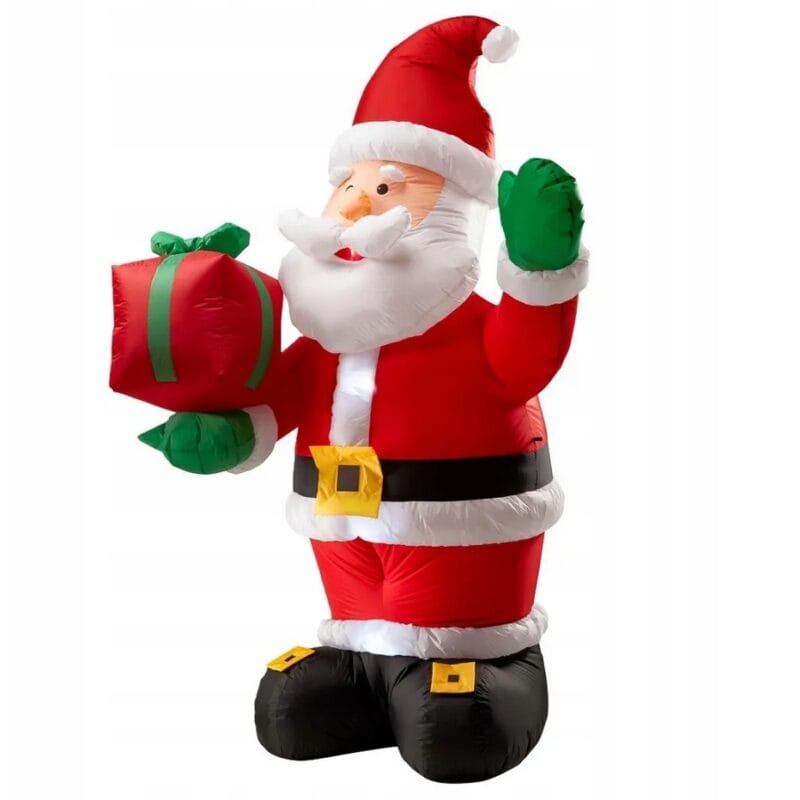 Dmuchany Mikołaj LED o wysokości 240 cm to efektowna dekoracja świąteczna, która natychmiast przyciąga wzrok i tworzy wyjątkowy klimat wokół domu, sklepu czy w ogrodzie. Dzięki wbudowanym diodom LED Mikołaj rozświetla przestrzeń ciepłym blaskiem, prezentując się efektownie zarówno w dzień, jak i po zmroku. Samopompujący mechanizm uruchamiany wentylatorem zapewnia szybkie i bezproblemowe rozstawienie. Zintegrowane obciążenie, zamek błyskawiczny oraz komplet kotew i sznurków montażowych gwarantują stabilność nawet w trudnych warunkach pogodowych.