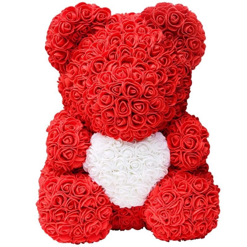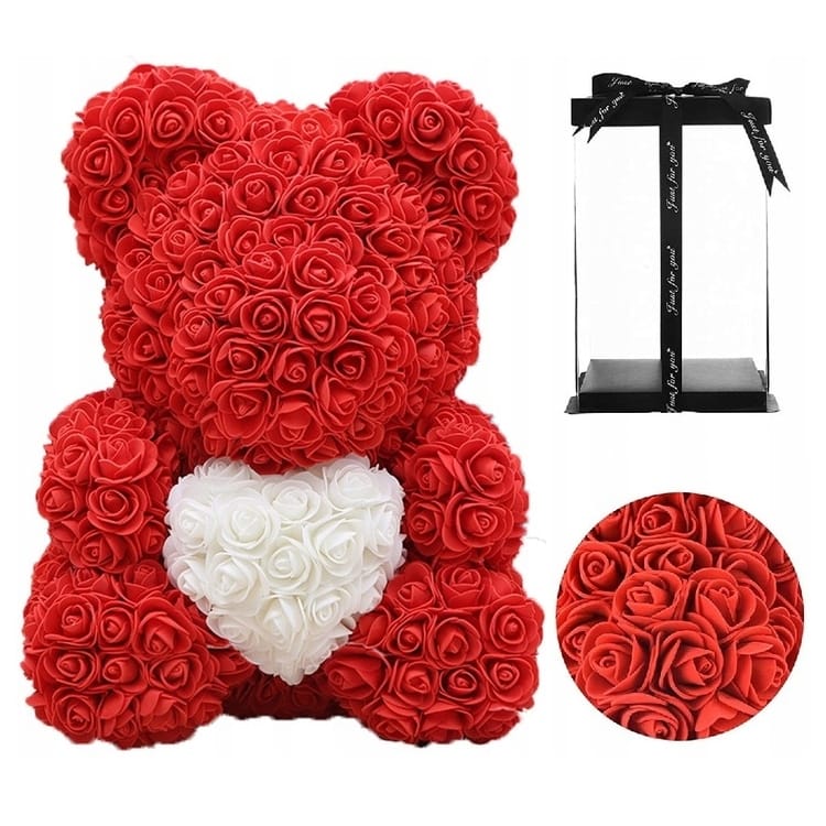 Elegancki miś z róż w kształcie serca to wyjątkowy upominek, który zachwyci swoją oryginalnością i urokiem. Idealny na Walentynki, Dzień Kobiet, Dzień Matki, rocznicę czy urodziny – sprawdzi się w każdej romantycznej i wyjątkowej okazji. Wykonany z drobnych, trwałych róż PE, pozostanie piękną pamiątką na długie lata, nie tracąc swojego uroku.