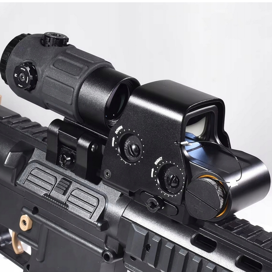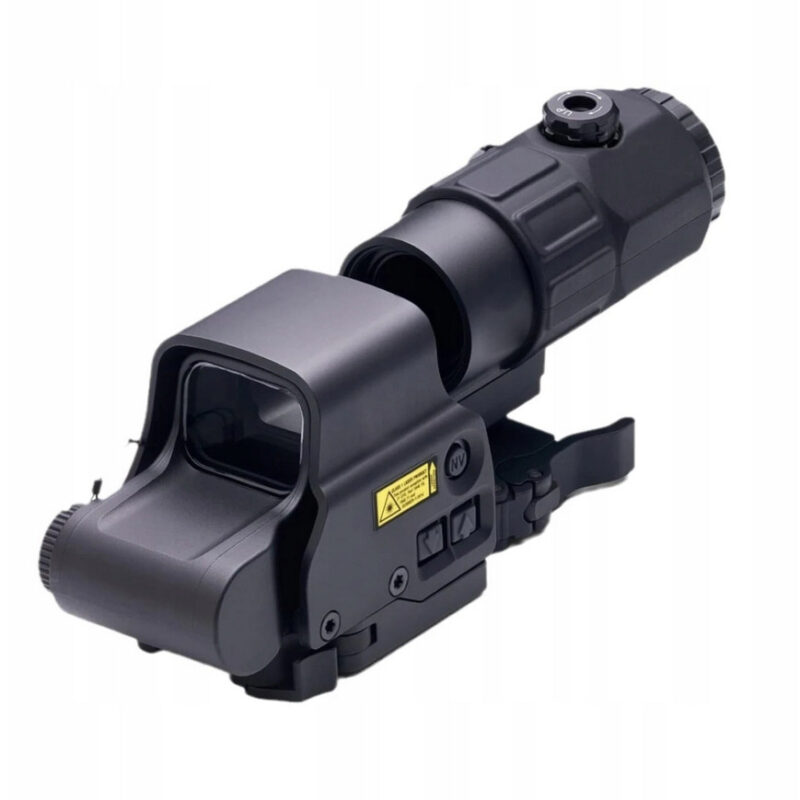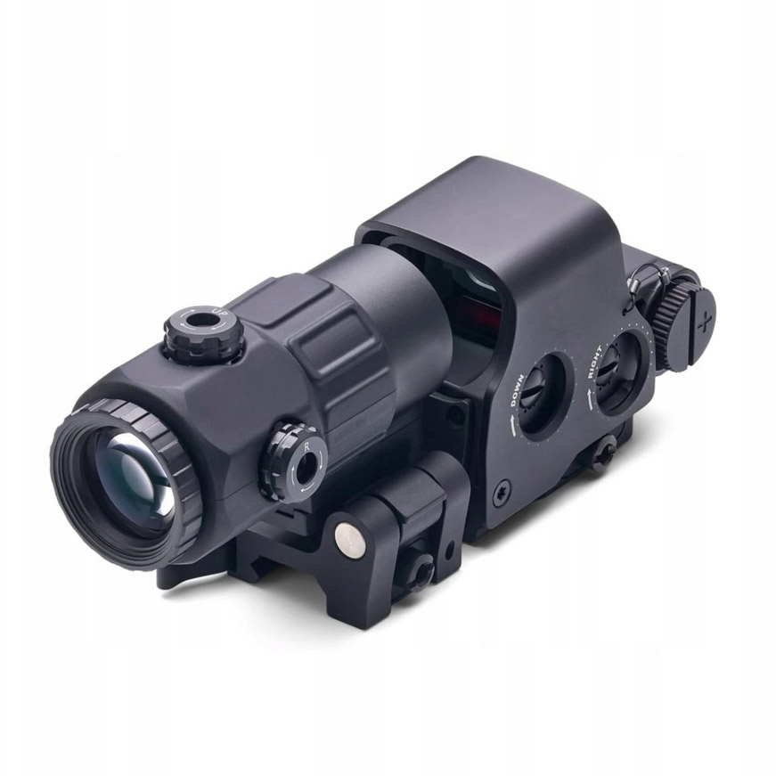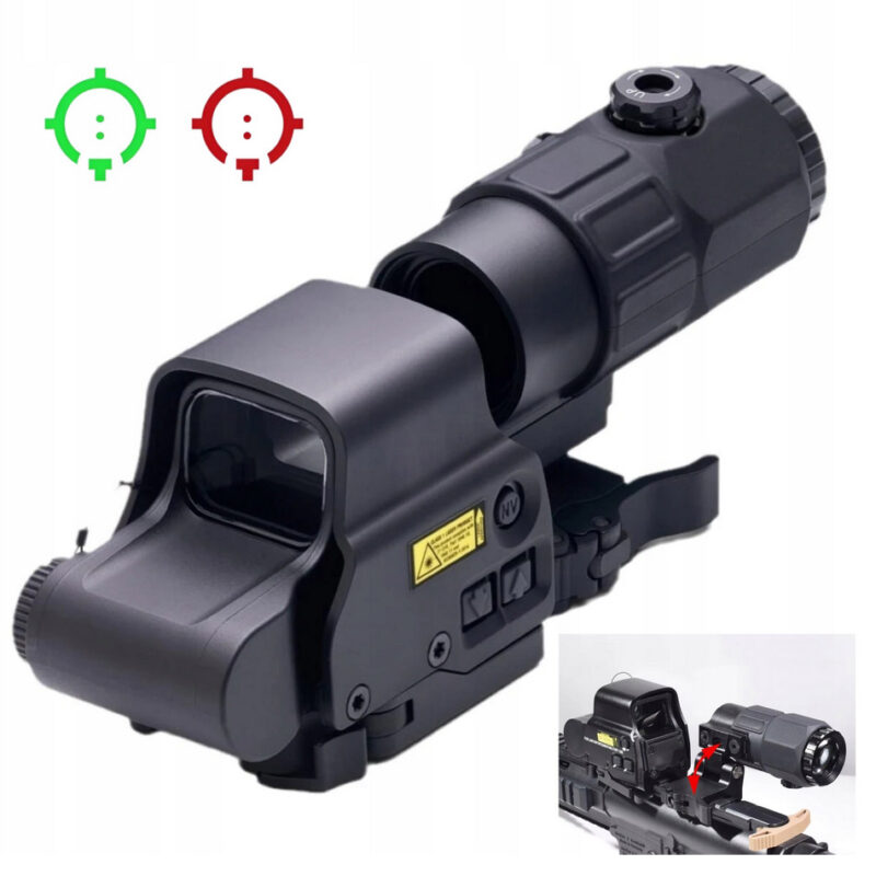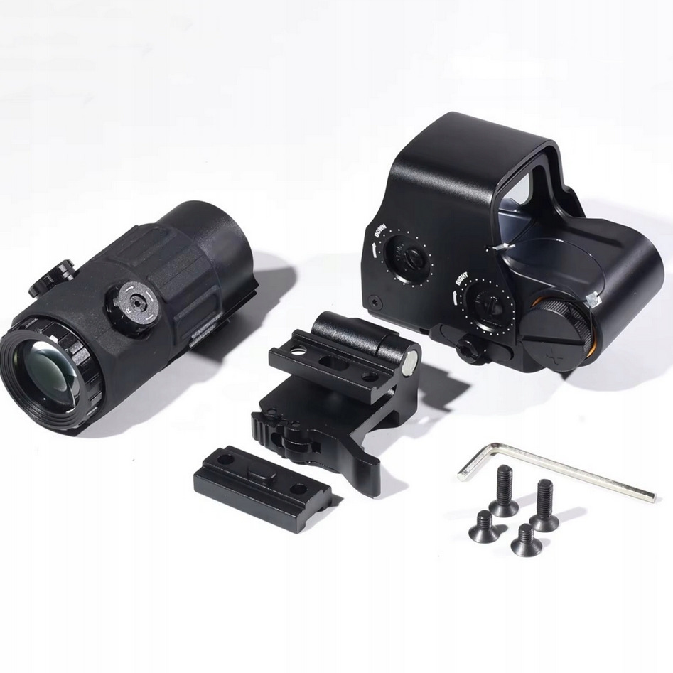 - Zestaw 2w1: celownik holograficzny + powiększalnik 3x