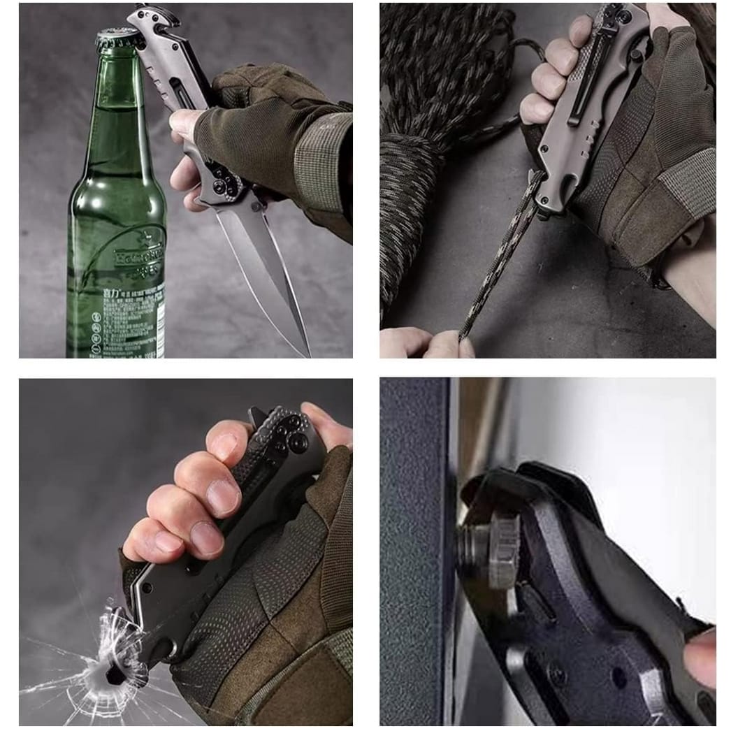 Wielofunkcyjny nóż składany typu scyzoryk to niezastąpione narzędzie taktyczne, ratownicze i survivalowe w jednym. Dzięki przemyślanej konstrukcji i dodatkowemu wyposażeniu sprawdzi się zarówno w codziennym użytkowaniu, jak i w nagłych, awaryjnych sytuacjach. Wykonany ze stali nierdzewnej, wyposażony w blokadę ostrza i wytrzymały klips, łączy trwałość, wygodę i bezpieczeństwo.