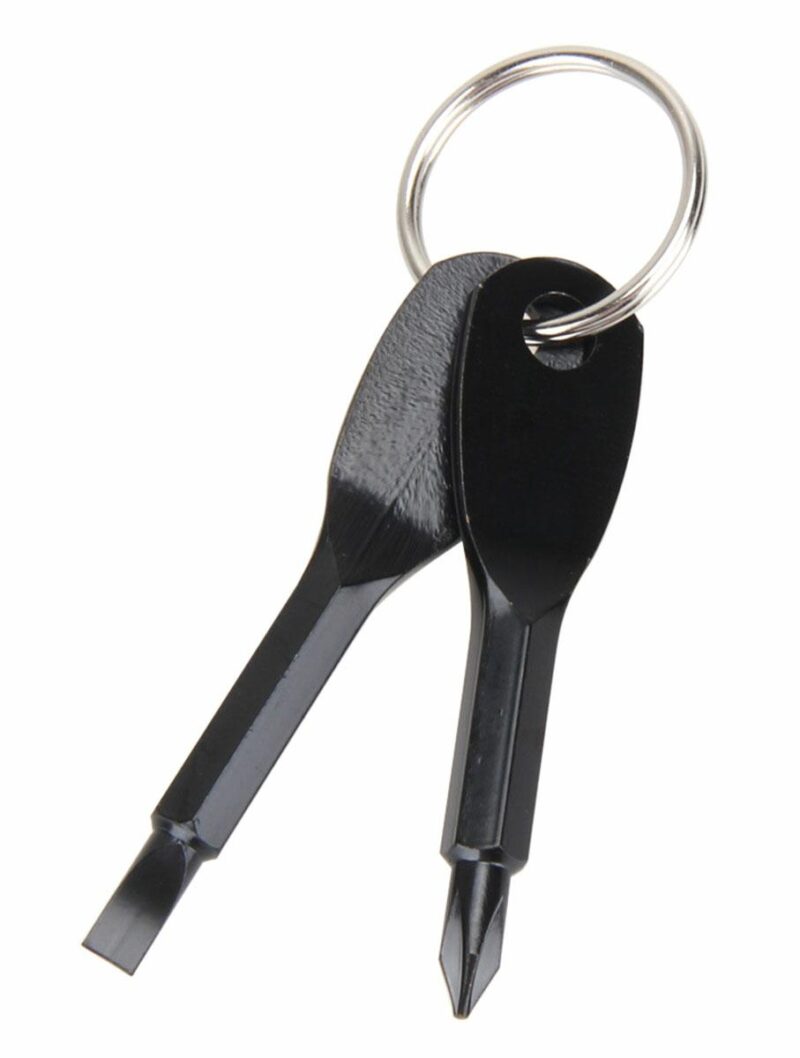 Funkcjonalny breloczek w formie dwóch kluczyków. Każdy z nich jest funkcjonalnym śrubokrętem (płaskim oraz krzyżakiem). Możliwość wygodnego przyczepienia do paska lub innych kluczy (załączone w zestawie kółeczko).