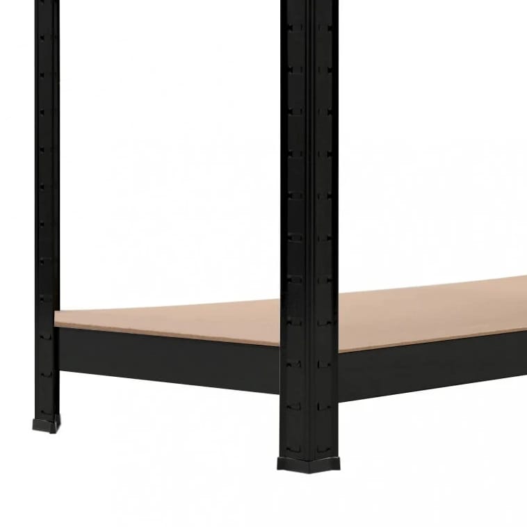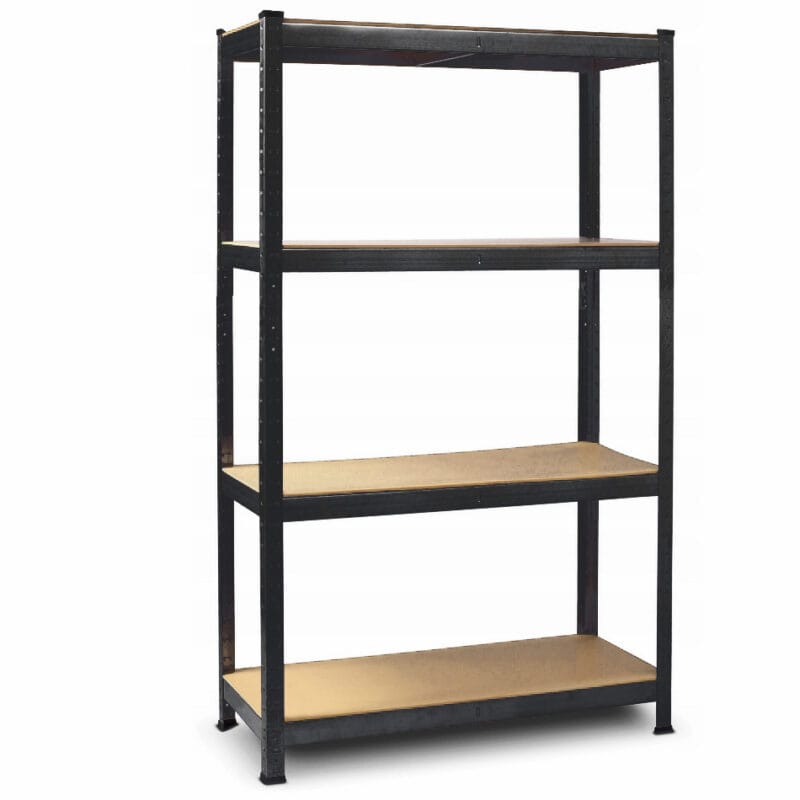 Funkcjonalny i stabilny regał magazynowy w kolorze czarnym, który znakomicie sprawdzi się w garażu, archiwum, sklepie, w schowku na narzędzia, piwnicy.