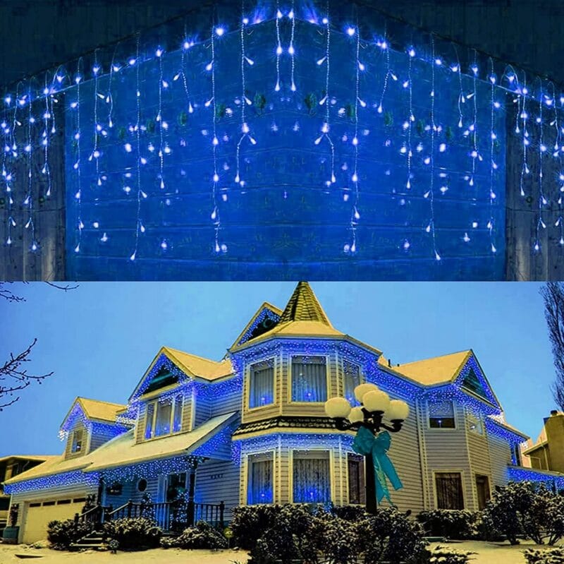 Sople LED 200 niebieskich światełek to efektowna i trwała dekoracja zewnętrzna, idealna do ozdabiania dachów, balkonów, altan czy ogrodzeń w okresie zimowym i świątecznym. Wysokiej jakości wykonanie oraz gruby, biały przewód o średnicy 2,3 mm zapewniają odporność na niekorzystne warunki atmosferyczne, a hermetyczna wtyczka w standardzie IP44 chroni przed wilgocią i niskimi temperaturami. Zestaw wyposażono w programator z 8 trybami świecenia oraz możliwość łączenia aż 5 kompletów w jeden system, sterowany wspólnie. Niebieskie światło nadaje aranżacjom wyjątkowego, chłodnego uroku.