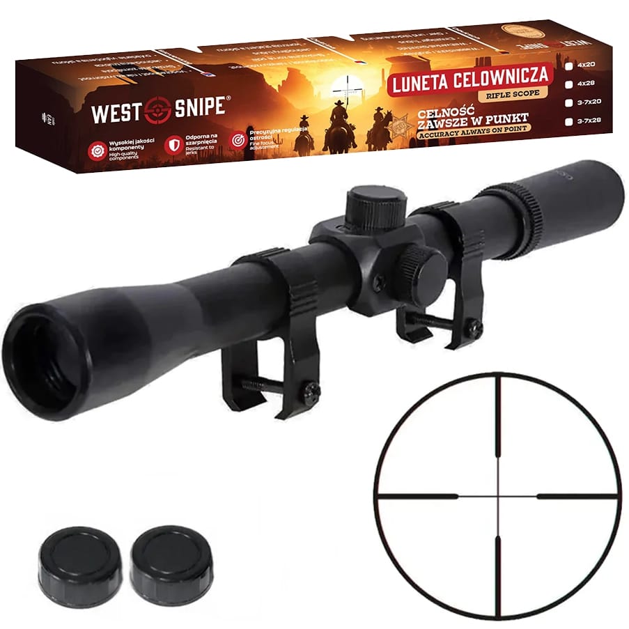 Luneta celownicza 4×20 to kompaktowy i lekki celownik optyczny, zaprojektowany z myślą o strzelaniu na krótkich dystansach z wiatrówek i karabinków pneumatycznych. Dzięki stałemu powiększeniu 4× oraz prostemu w użyciu krzyżowi 30/30, luneta stanowi idealne wsparcie dla początkujących strzelców oraz do rekreacyjnego strzelania w terenie lub na strzelnicy. Niewielkie rozmiary i niska waga nie obciążają karabinka, zachowując pełną funkcjonalność i precyzję.