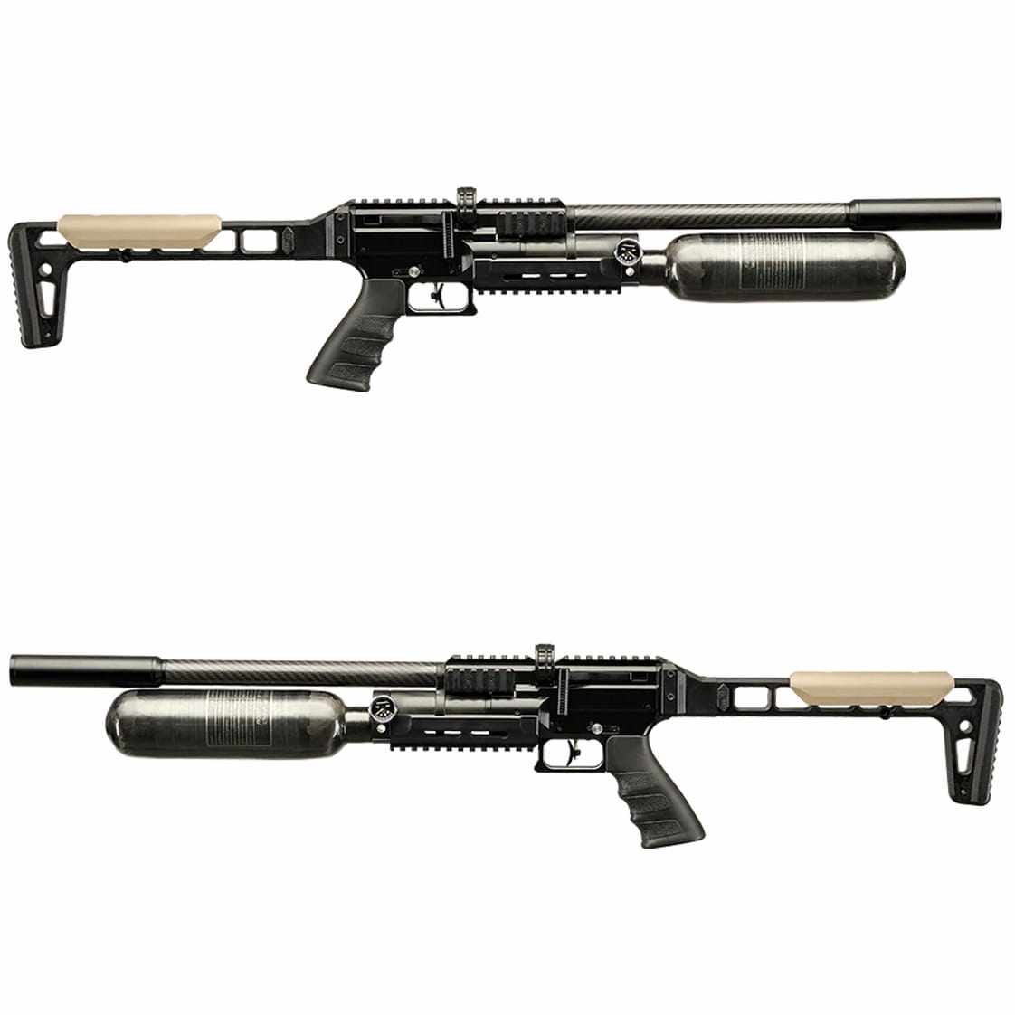 - Karbonowa butla 350 cm³ – większa liczba strzałów i niższa masa