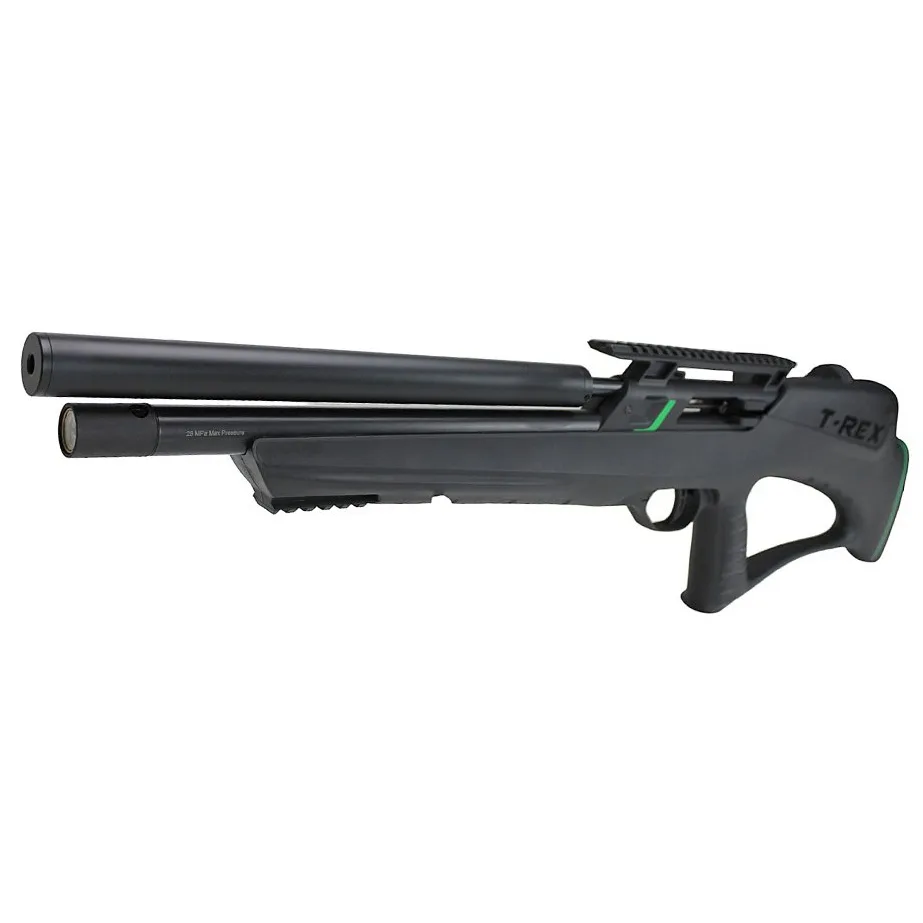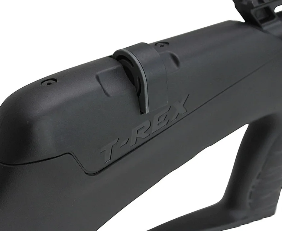 - Wytrzymała Konstrukcja: Model T-REX BULLPUP został osadzony w polimerowej kolbie z antypoślizgowymi elementami, zapewniając maksymalną stabilność podczas strzelania.