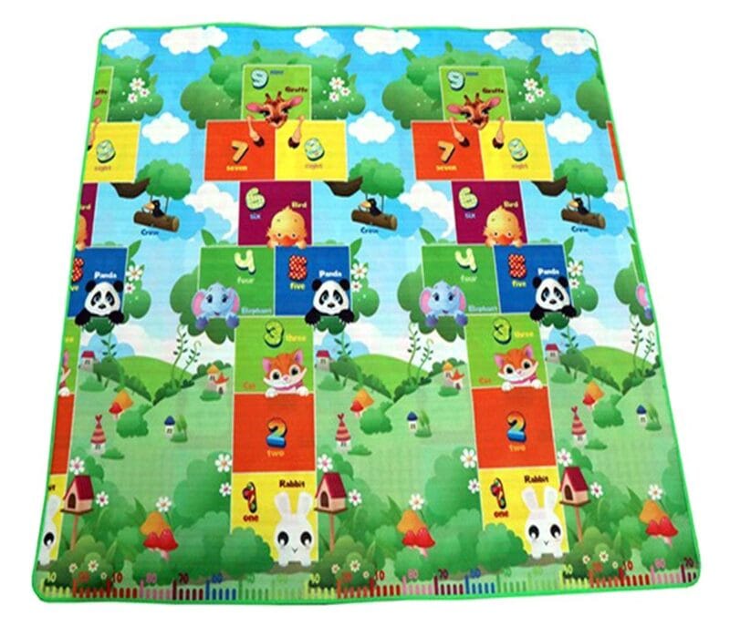 - Alfabet umieszczony jest na jednej stronie maty, natomiast z drugiej wciągająca plansza do gier rozwijających wyobraźnię.