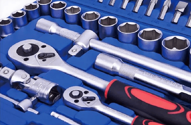 - 2 grzechotki (1/4″ i 1/2″), 4 przedłużki, przeguby, T-bar, 3 klucze imbusowe